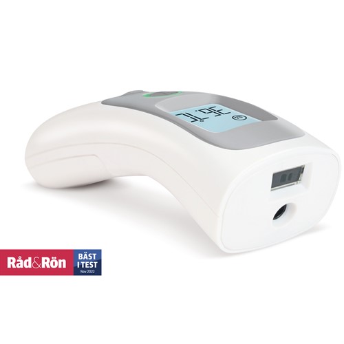 Med denna icke-kontakt infraröda termometer kan du mäta temperaturen på 1 sekund och den är mer hygienisk eftersom den mäter utan hudkontakt. Termometern kan också användas för mätning av ytförmål som mat/drycker eller visa rumstemperatur.
