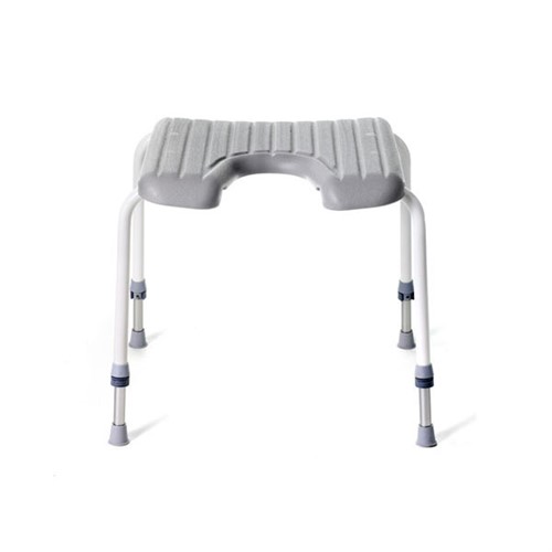 Duschpallen har en ställbar höjd mellan 45-55 cm.