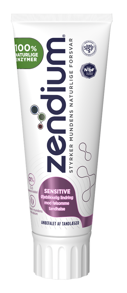 Zendium Sensitive är speciellt framtagen för att motverka ilningar i tänderna. Zendium Sensitive innehåller också enzymer och colostrum och har en dokumenterad effekt mot plack. Tandkrämen innehåller, precis som zendiums övriga tandkrämer, ett milt skummedel som gör den extra lämplig för personer med torra och känsliga munslemhinnor