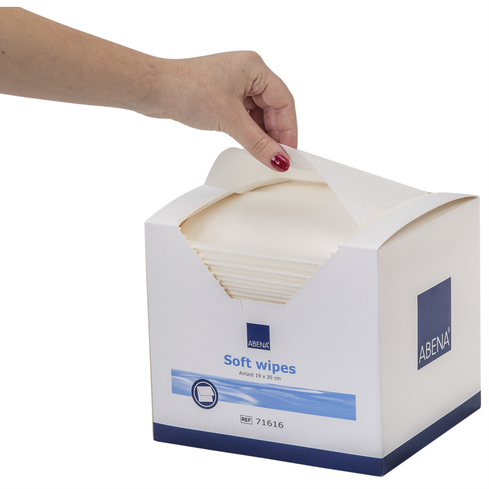Tvättlappar i airlaid-material för personlig hygien. Airlaid är extra mjukt och därför mycket lämpligt vid tvätt av patienter. Materialet är luftbehandlat för att vara extra mjukt och absorberande (6 gånger sin egen vikt) samtidigt som det har högre våtstyrka än vanligt papper. Kasta tvättlappen i papperskorgen efter användning. Produkten får endast användas utvärtes på kroppen. Undvik kontakt med ögonen.