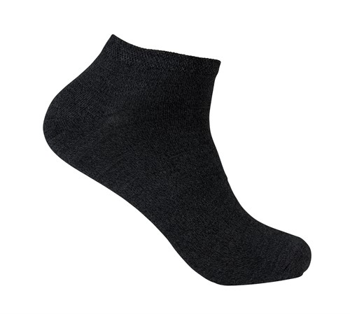 Mönstrad bambusock med kort skaft, 1-pack. Melerad. Viskos av bambu är mjukt, följsamt och med sina runda lena fibrer extra bra för känslig hud. Bambu är naturligt fuktreglerande och känns behagligt svalt när det är varmt samtidigt som det värmer bra vid kallt väder. Textilier av bambu är ett betydligt mer miljövänligt material än konventionellt odlad bomull om den tillverkas i ett slutet system.