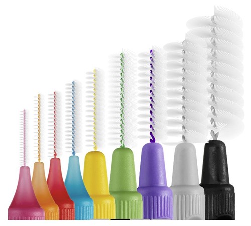 - De mindre borstarna (0-3) har en flexibel tipp för ökad åtkomlighet och hållbarhet. De större storlekarna (4-8) har en tjockare, böjbar borstdel.