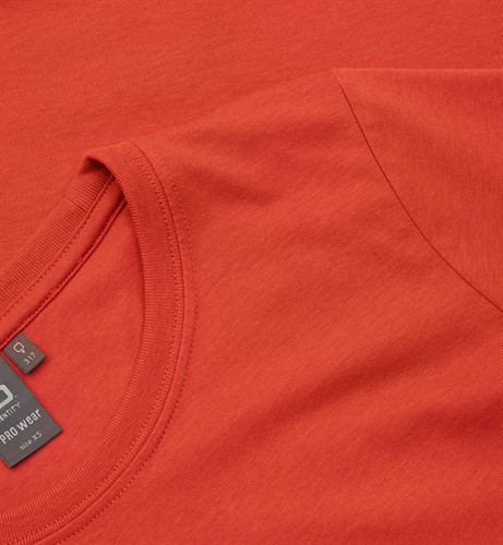 Extra slitstark T-shirt i lättare tyg. Fyra- lagersribbsticking, nack-och axelband. Med halvmåne i nacken. T-shirten har genomgått en förkrympningsprocess vid mycket höga temperaturer, båda före och efter indfärgningen, för extra stabilitet och lång livstid.