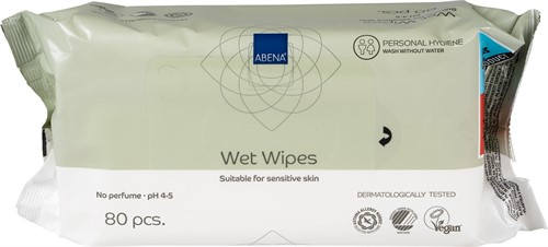 Våtservetter för personlig hygien är tillverkade i polyester och viskos, vilket gör dem extra mjuka och sköna mot huden. Våra våtservetter är ett utmärkt alternativ till traditionell tvätt med tvål och vatten, och tack vare pH-värdet kan de användas över hela kroppen. De tar enkelt och effektivt bort orenheter och oönskad lukt. ABENA:s våtservetter finns i olika storlekar och förpackningar, så det är enkelt att hitta rätt lösning för dina personliga behov. Och självklart är våtservetterna extremt praktiska att ta med sig när du är på språng.