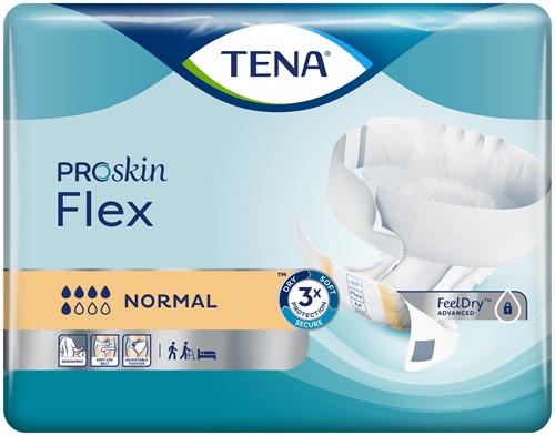 TENA Flex Normal är en revolutionerande bältesförsedd inkontinensprodukt designad med både användare och vårdpersonal i åtanke, för god läckagesäkerhet och mer ergonomiska byten. Dessa superabsorberande produkter är perfekta för personer med svår inkontinens. Bältet hålls på plats med ett fästsystem som är enkelt att hantera. Det mjuka och elastiska COMFIStretch™-bältet går att anpassa till olika kroppsformer, sitter säkert och bekvämt på plats och är ett enastående läckageskydd.