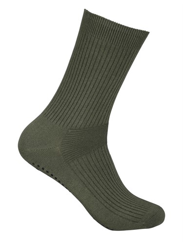 Socka med anti-halkskydd ger foten bättre grepp och skyddar mot hala underlag inomhus. Viktigt för personer med sämre balans, nedsatt styrka och/eller för de som lider av yrsel. Lös resår i skaftet för extra komfort. Halkskydd i 100% silikon.