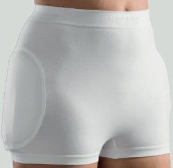 Höftskyddsbyxa med mjuka, fastsydda textila skydd. Materialet i skydden andas och byxan är mycket sval att bära. Patenterad hästskoform som är såväl energispridande som energiupptagande. Används som vanliga underbyxor eller överdragsbyxa. Byxan är rundstickad och mycket elastisk, lätt att ta på och av. Fungerar även bra med större inkontinensskydd. 60314 Open-modellen är öppen i grenen och rekommenderas vid kraftigare inkontinens tillsammans med inkontinensskydd och behöver ej tas av vid toalettbesök.