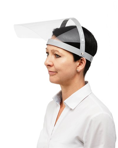 • Skyddsvisiret täcker mun, näsa och ögon, men ansiktsuttrycket förblir synligt