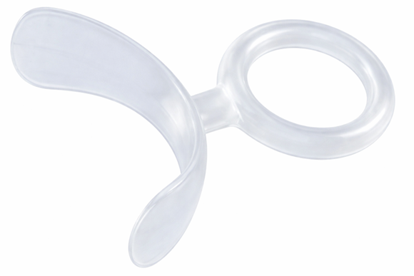 Skärmen placeras i munnen, mellan läpparna och tänderna. För att träna drar man i handtaget, ut från munnen.