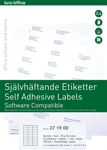 Vad vill du veta om Kopierings & laseretikett 70x25,4mm/33 etiketter per ark 100stA4/fp?